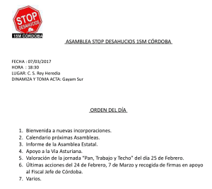 Os convocamos a la próxima asamblea de Stop Desahucios 15M Córdoba, el martes 7 de marzo, a las 18:30h, en el Centro Social Rey Heredia. Aquí tenéis el orden del día. Os esperamos!!
