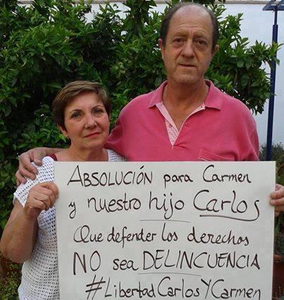 Defender los derechos NUNCA NUNCA NUNCA NUNCA puede ser DELINCUENCIA, nunca. Por lo que nos sumamos a la petición de la madre y el padre de Carlos de absolución, nos solidarizamos con su causa y su dolor, y compartimos su indignación por el hecho de que un estado represor haya condenado a penas de cárcel a Carmen y Carlos por defender los derechos de l@s trabajador@s.