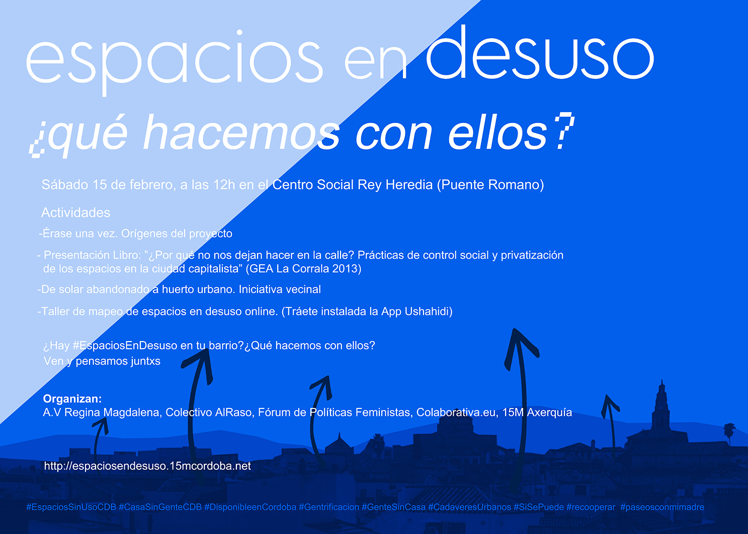 Presentación de un análisis y actuaciones sobre Espacios en Desuso (tanto privados como públicos) de Córdoba desarrollado desde hace un año por la Red de Colectivos de los barrios del Centro y otras organizaciones.
