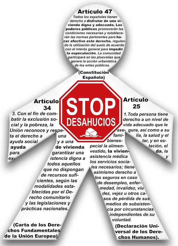 La Declaración Universal de Derechos Humanos y la Constitucion nos amparan, pero nuestras administraciones públicas no velan por el cumplimiento de estos derechos, por eso hemos salido a la calle para denunciar y reclamar lo que nos quitan, porque es nuestro de pleno derecho.
