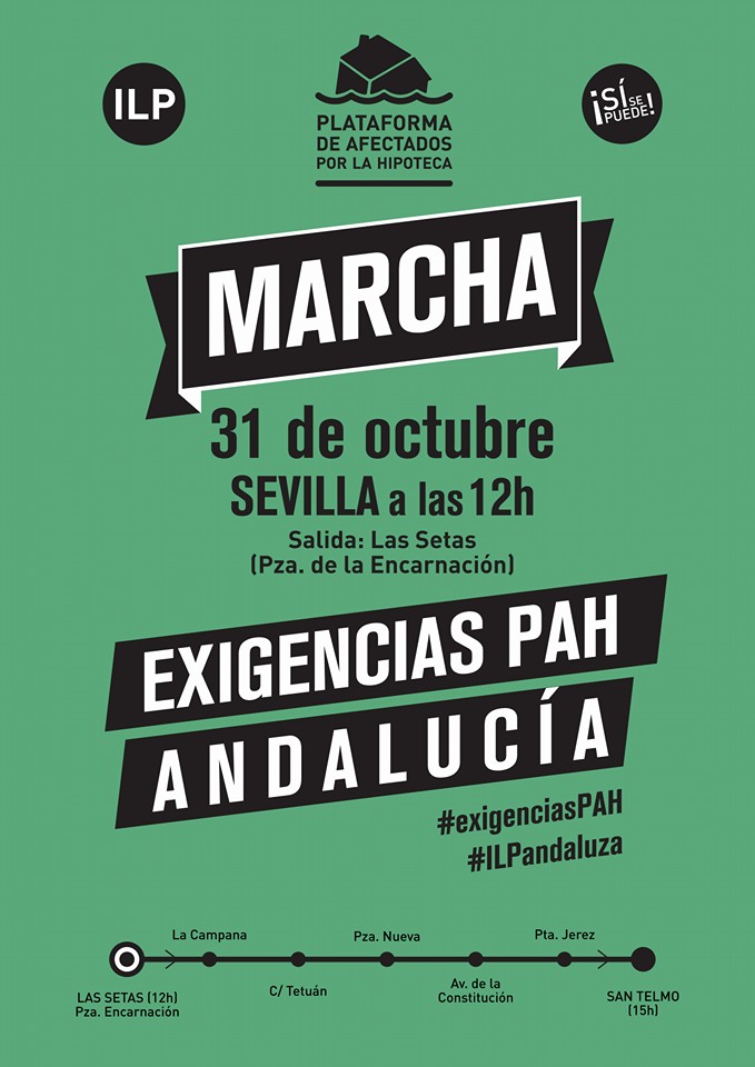 Os convocamos a la Manifestación que se celebrará el próximo día 31 de Octubre en Sevilla para exigir una ley que garantice los suministros básicos a las familias sin recursos. La actividad se prolongará entre las 10h. y las 15h.