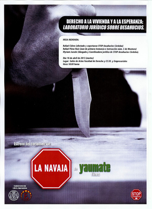 Mañana, martes 16 de abril, a las 18:00 tendrá lugar una mesa redonda sobre derecho hipotecario en el Salón de Actos de la Facultad de Derecho. Stop Desahucios Córdoba estará presente en esa mesa con dos de sus representantes: Rafael Cidres y Myriam Jurado.