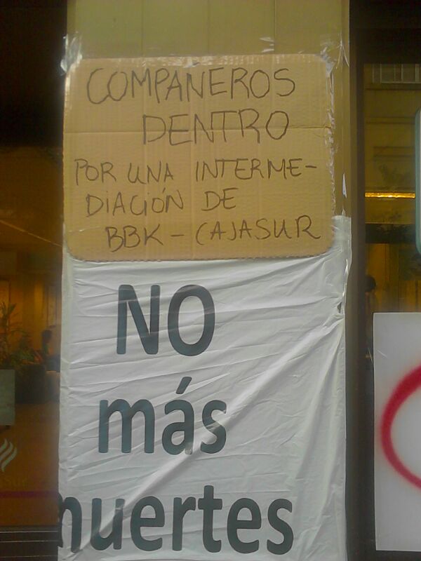 Los compañeros de las oficinas de La Viñuela y C/ Damasco han sido desalojados, sin que BBK-Cajasur se haya dignado a dialogar y mucho menos a negociar.