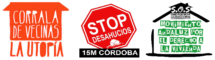 La Plataforma 15M Stop Desahucios Córdoba convoca una concentración el viernes 7 de febrero a las 10:30 en la fuente del Bulevar Gran Capitán con Ronda de Los Tejares, en RECHAZO AL DESALOJO QUE EN 15 DÍAS LAS FAMILIAS DE LA CORRALA DE VECINAS LA UTOPIA EN SEVILLA VAN A SUFRIR. Llevan casi dos años en un bloque abandonado de la entidad, intentando llegar a un acuerdo de alquiler social con IBERCAJA sin resultados. El Defensor del Pueblo Andaluz convocó una reunión entre las partes y Amado Franco u otra persona responsable de la entidad ni se presentó.